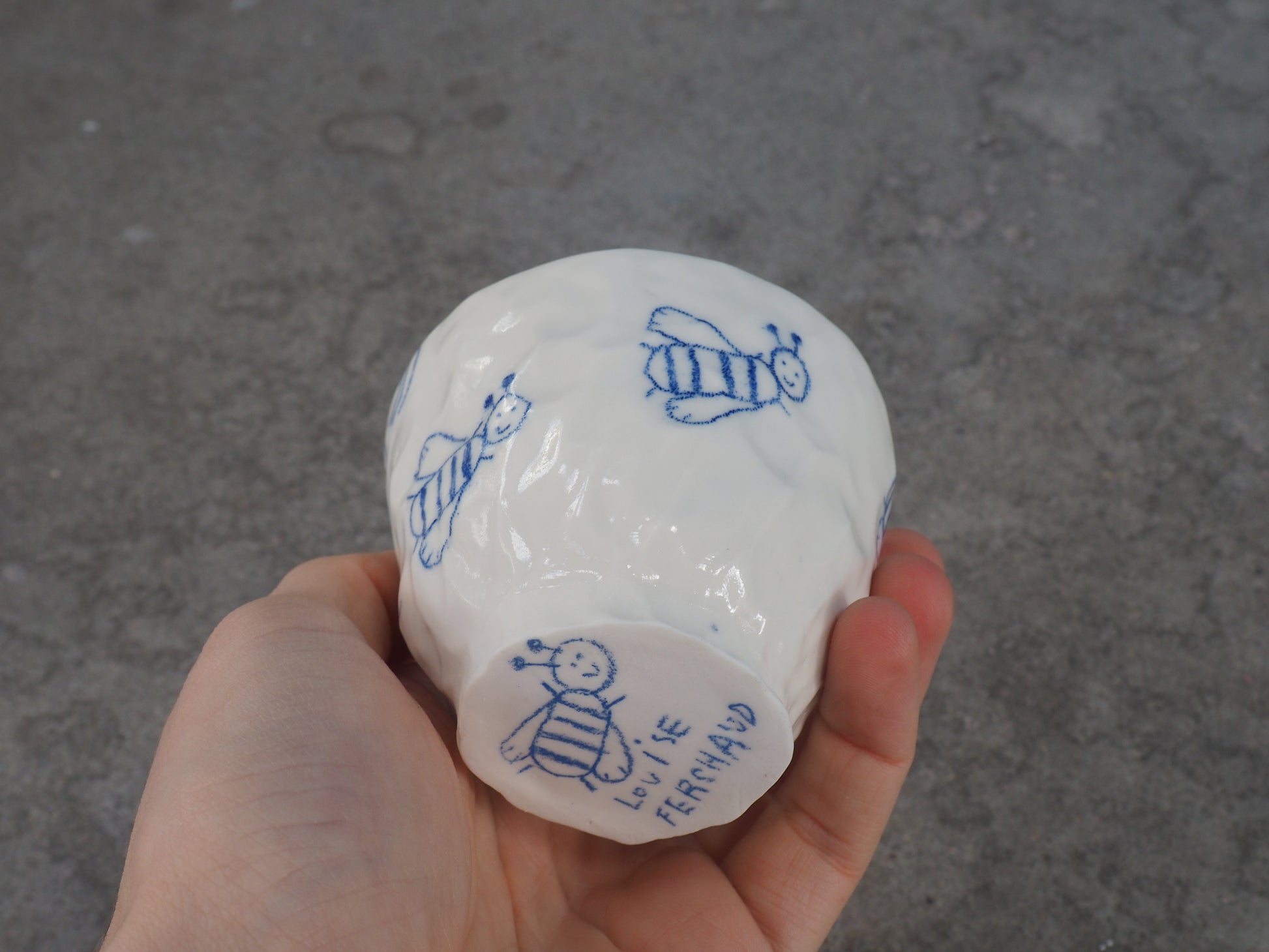 Be careful, every porcelain is slightly different. I made all the cups by hand with the "pinch" technique so every porcelain is shaped different and every drawings is a little bit different from the picture :-)