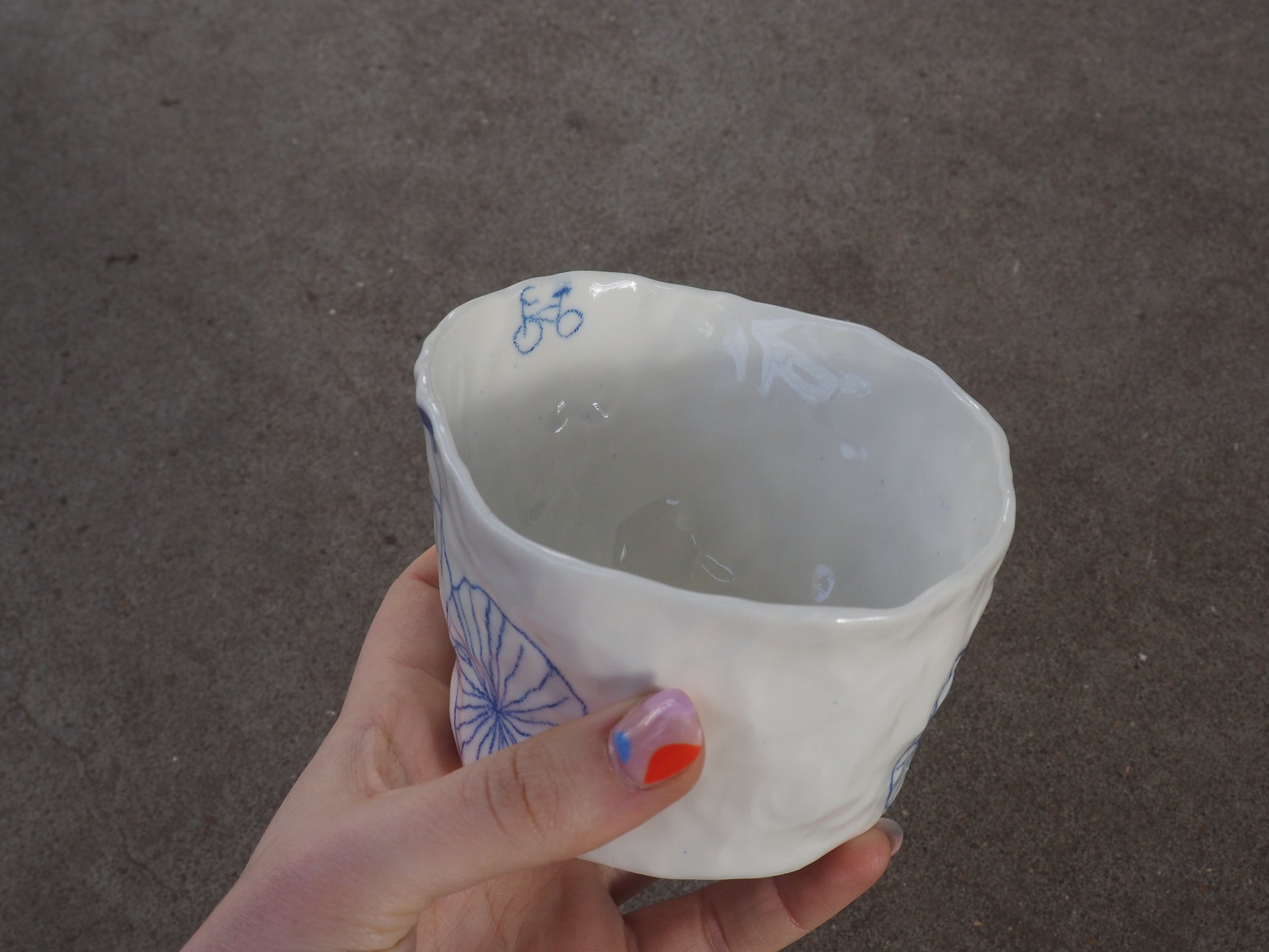 Be careful, every porcelain is slightly different. I made all the cups by hand with the "pinch" technique so every porcelain is shaped different and every drawings is a little bit different from the picture :-)