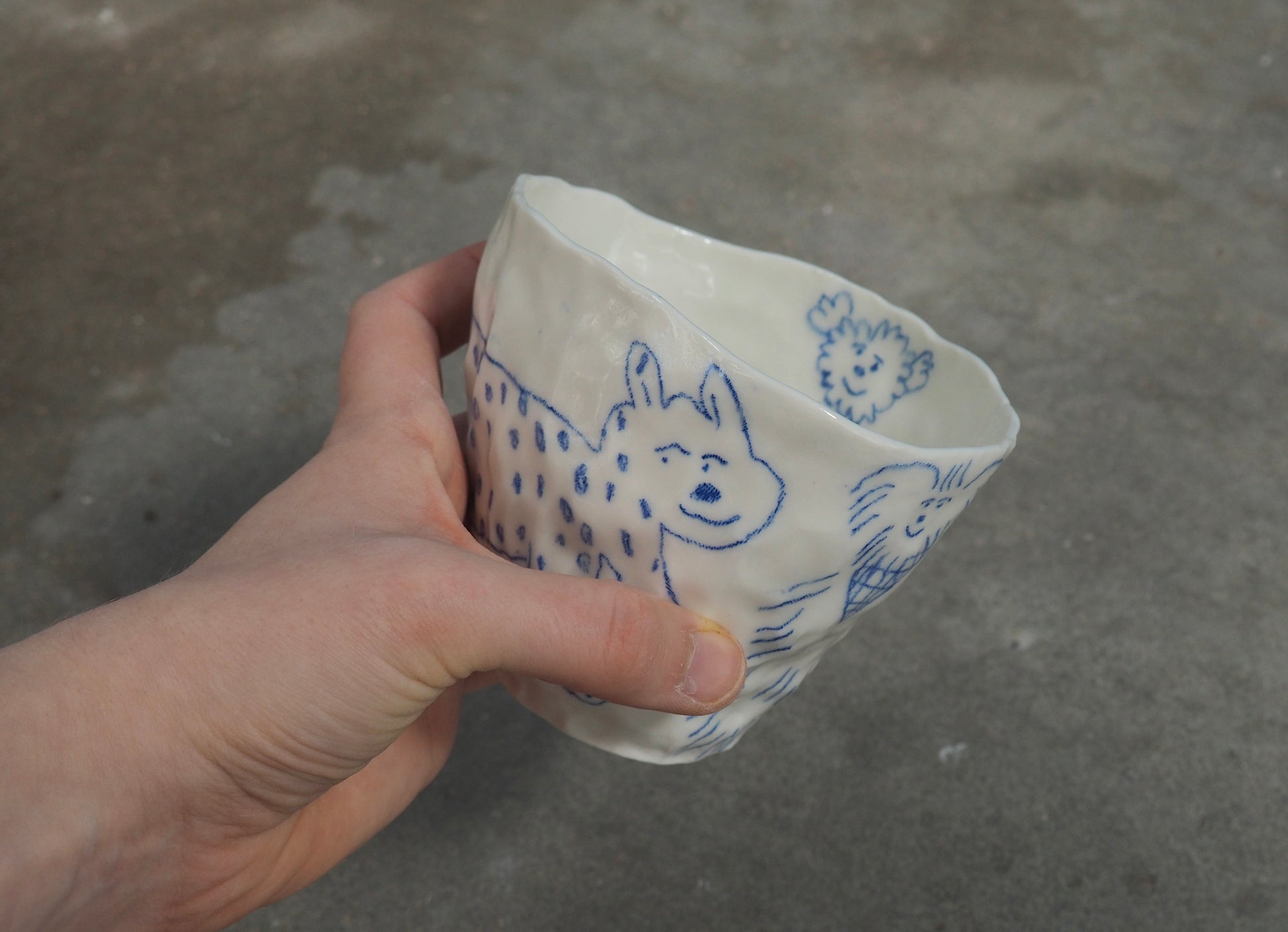 Be careful, every porcelain is slightly different. I made all the cups by hand with the "pinch" technique so every porcelain is shaped different and every drawings is a little bit different from the picture :-)