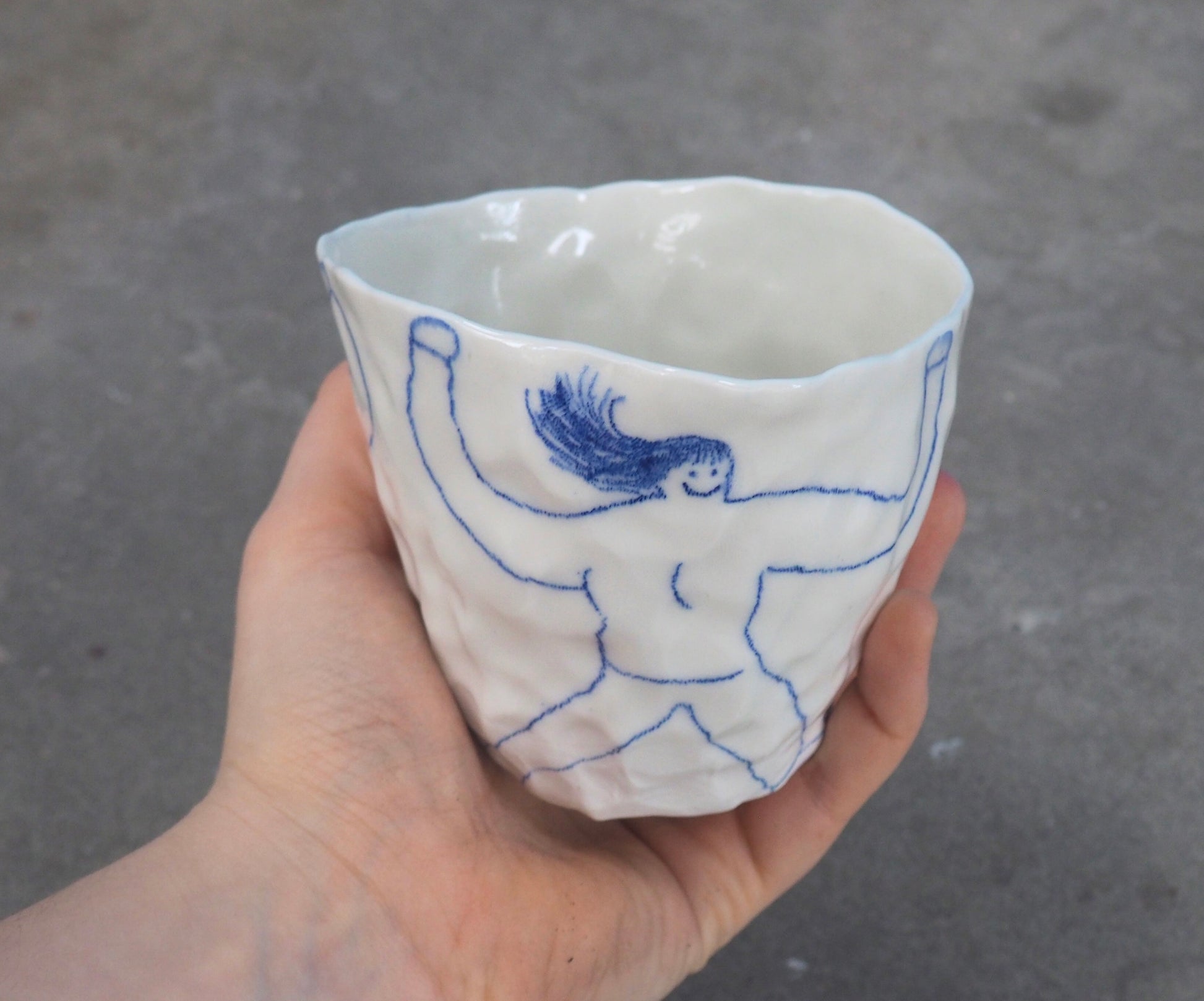 Be careful, every porcelain is slightly different. I made all the cups by hand with the "pinch" technique so every porcelain is shaped different and every drawings is a little bit different from the picture :-)