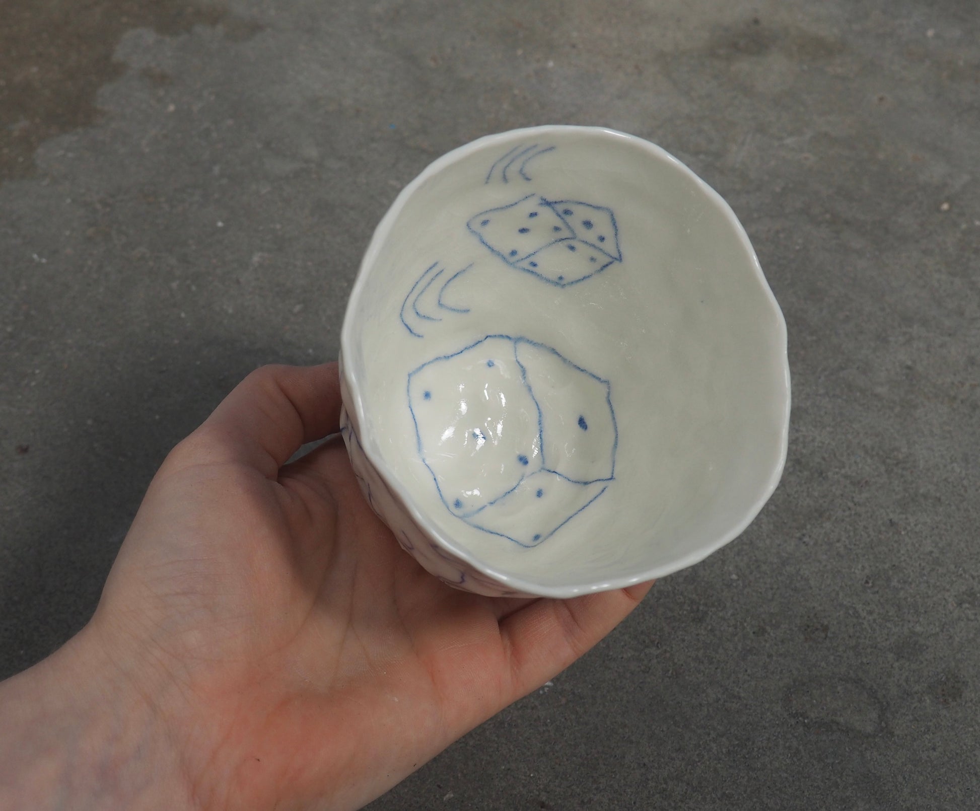 Be careful, every porcelain is slightly different. I made all the cups by hand with the "pinch" technique so every porcelain is shaped different and every drawings is a little bit different from the picture :-)