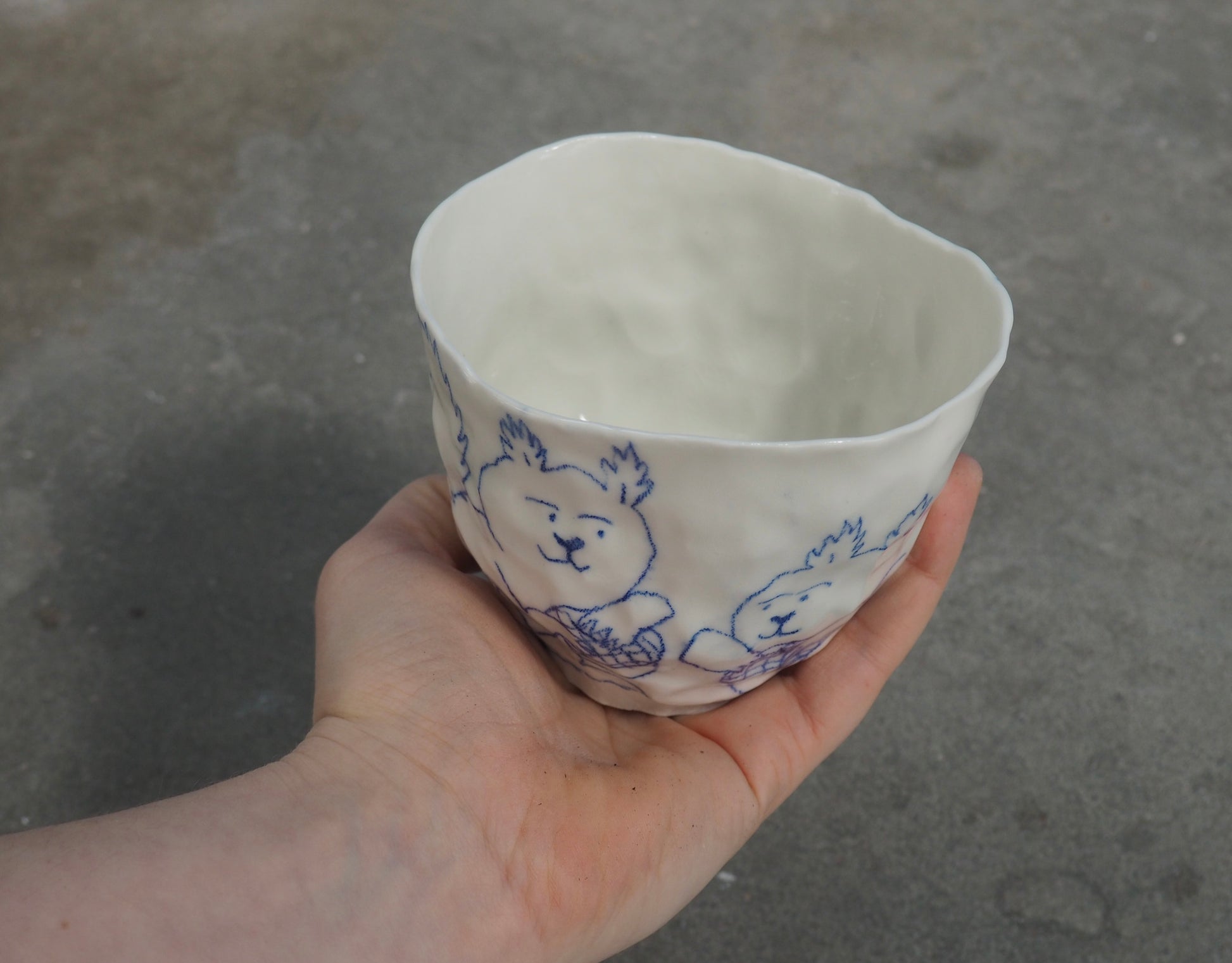 Be careful, every porcelain is slightly different. I made all the cups by hand with the "pinch" technique so every porcelain is shaped different and every drawings is a little bit different from the picture :-)