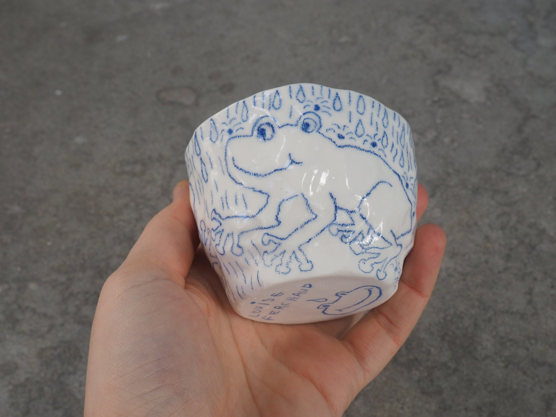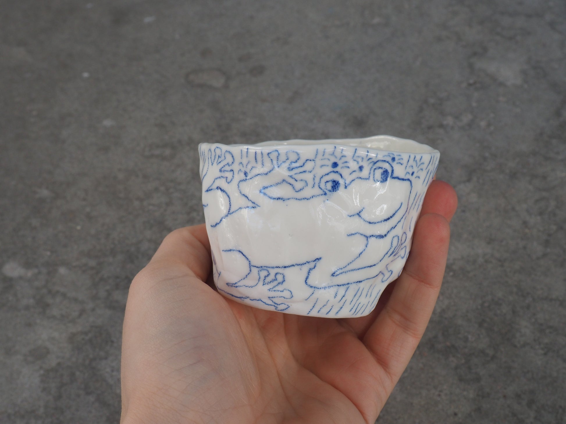 Be careful, every porcelain is slightly different. I made all the cups by hand with the "pinch" technique so every porcelain is shaped different and every drawings is a little bit different from the picture :-)