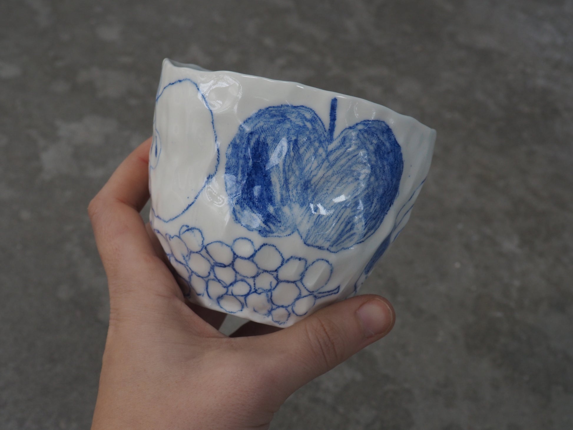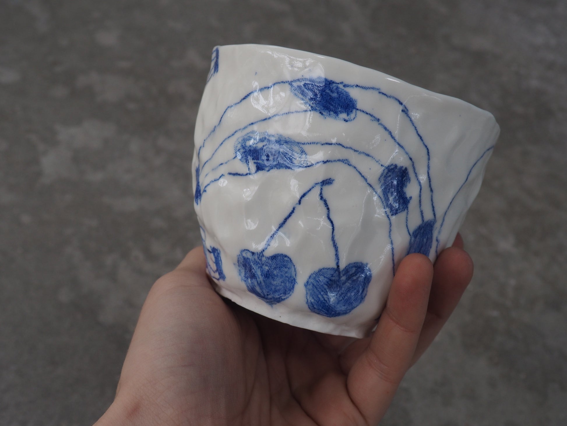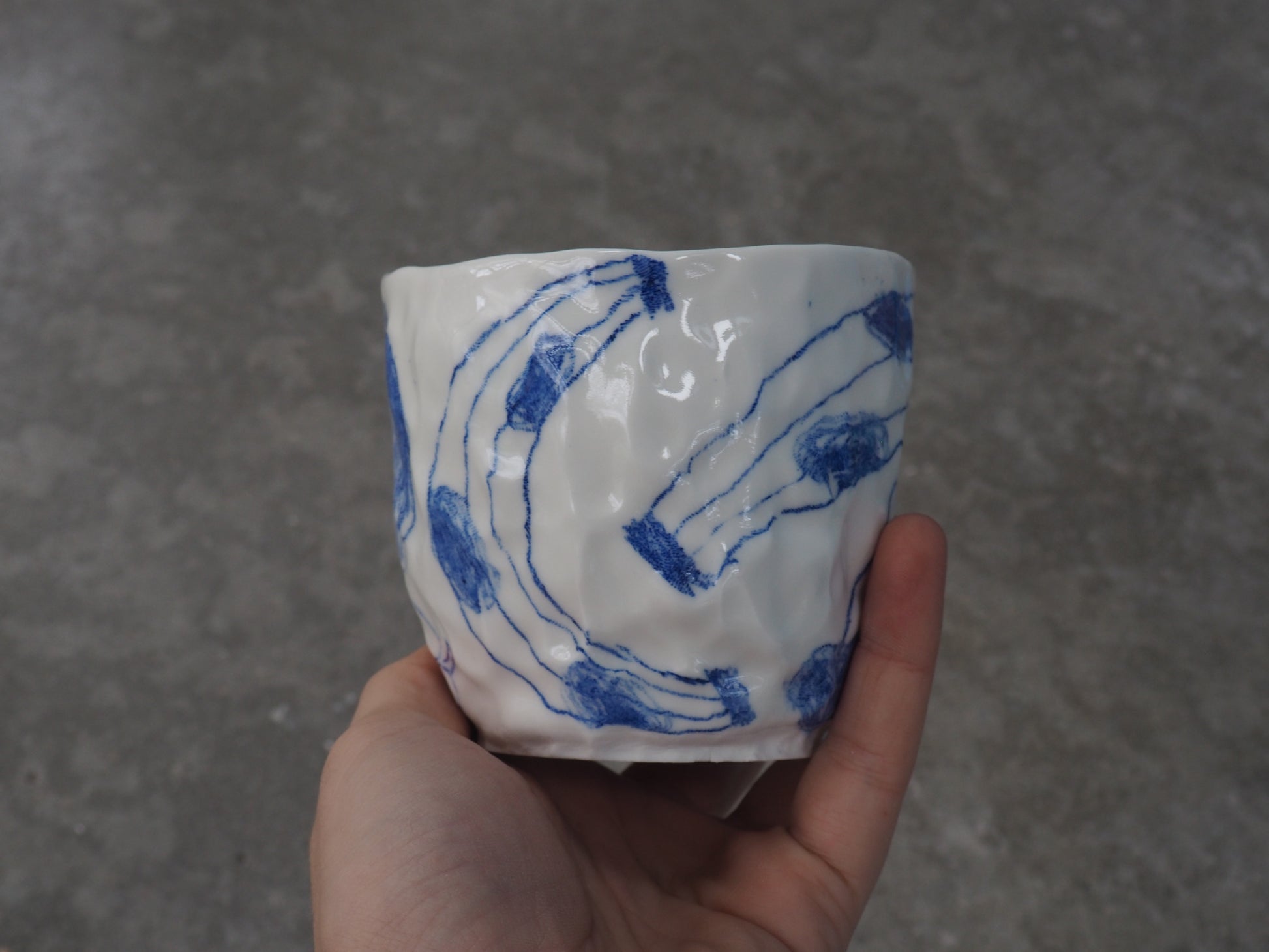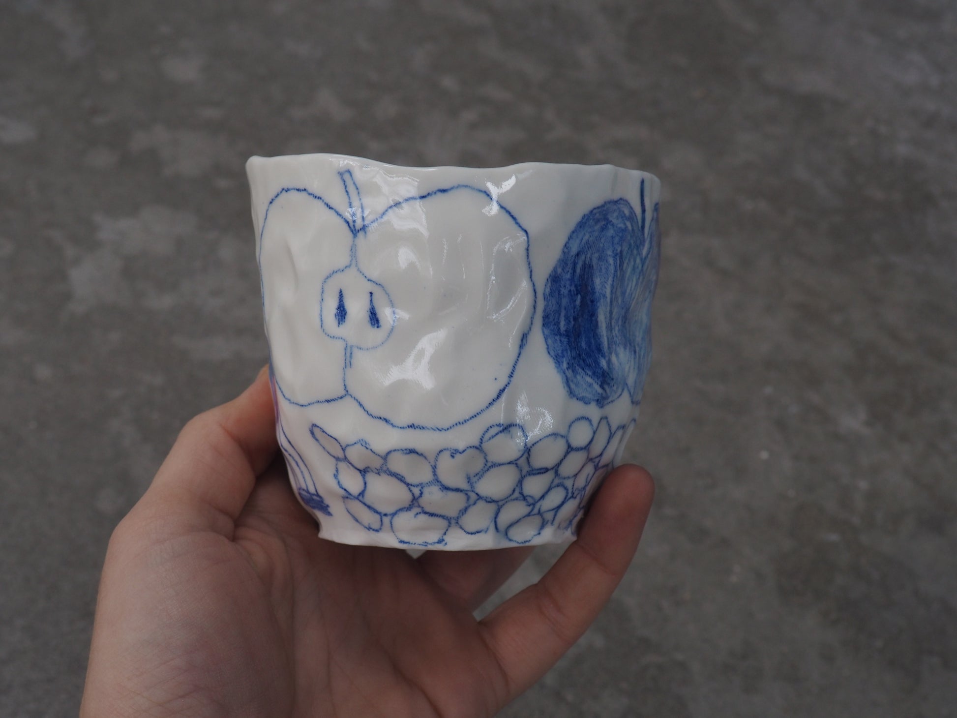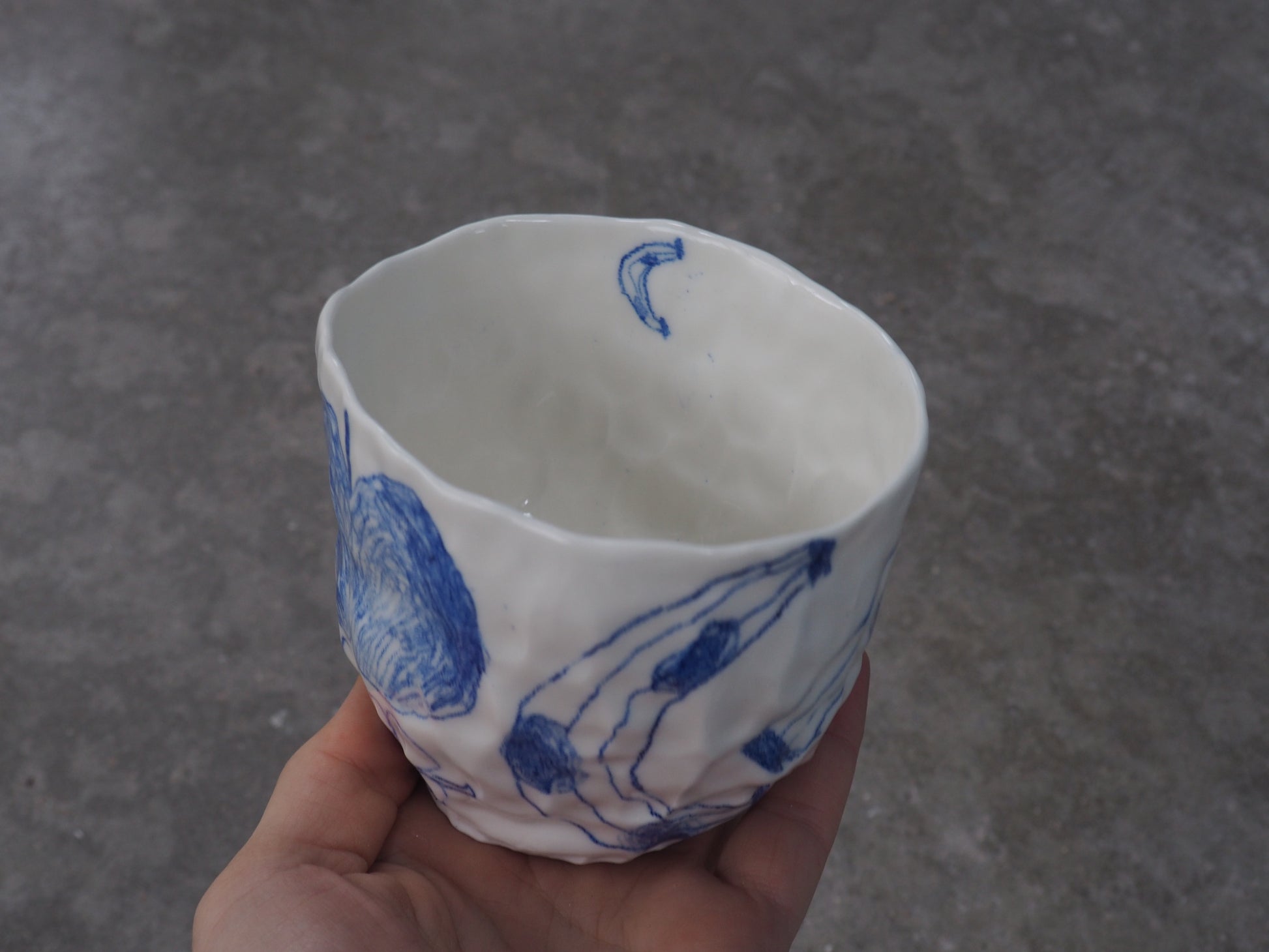 Be careful, every porcelain is slightly different. I made all the cups by hand with the "pinch" technique so every porcelain is shaped different and every drawings is a little bit different from the picture :-)