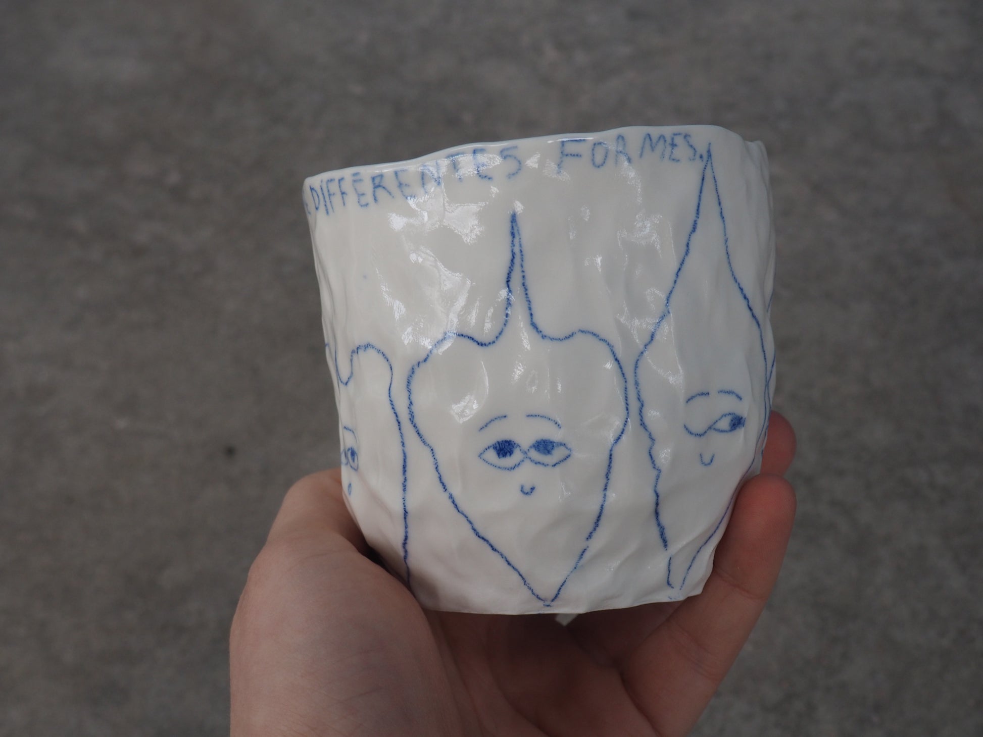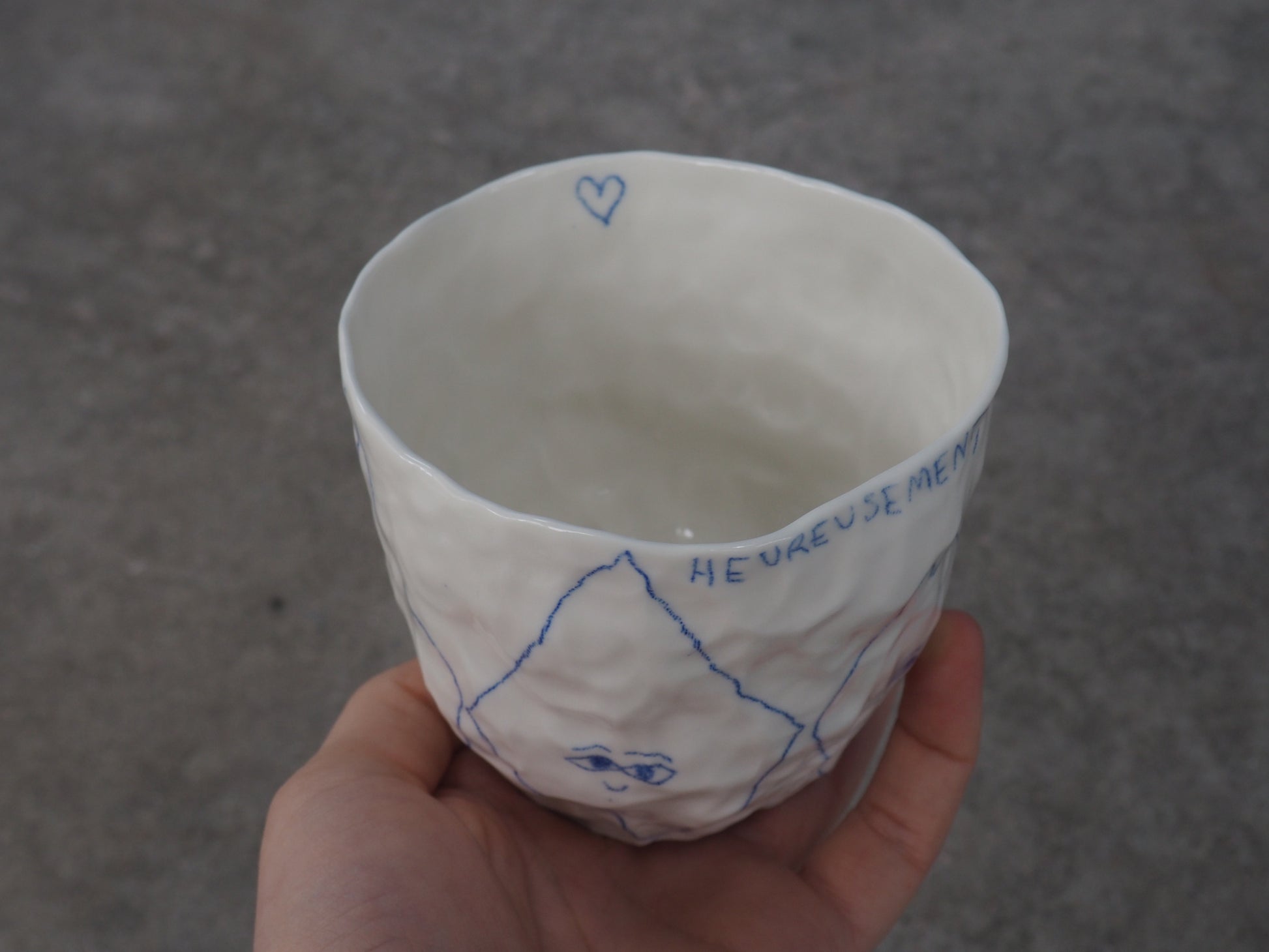 Be careful, every porcelain is slightly different. I made all the cups by hand with the "pinch" technique so every porcelain is shaped different and every drawings is a little bit different from the picture :-)