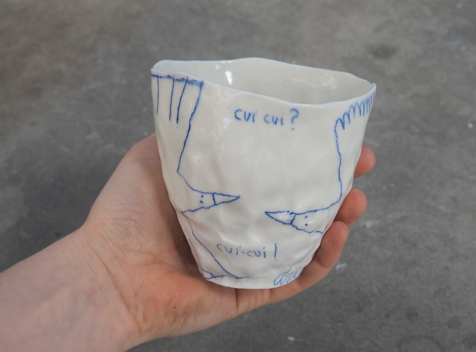Be careful, every porcelain is slightly different. I made all the cups by hand with the "pinch" technique so every porcelain is shaped different and every drawings is a little bit different from the picture :-)